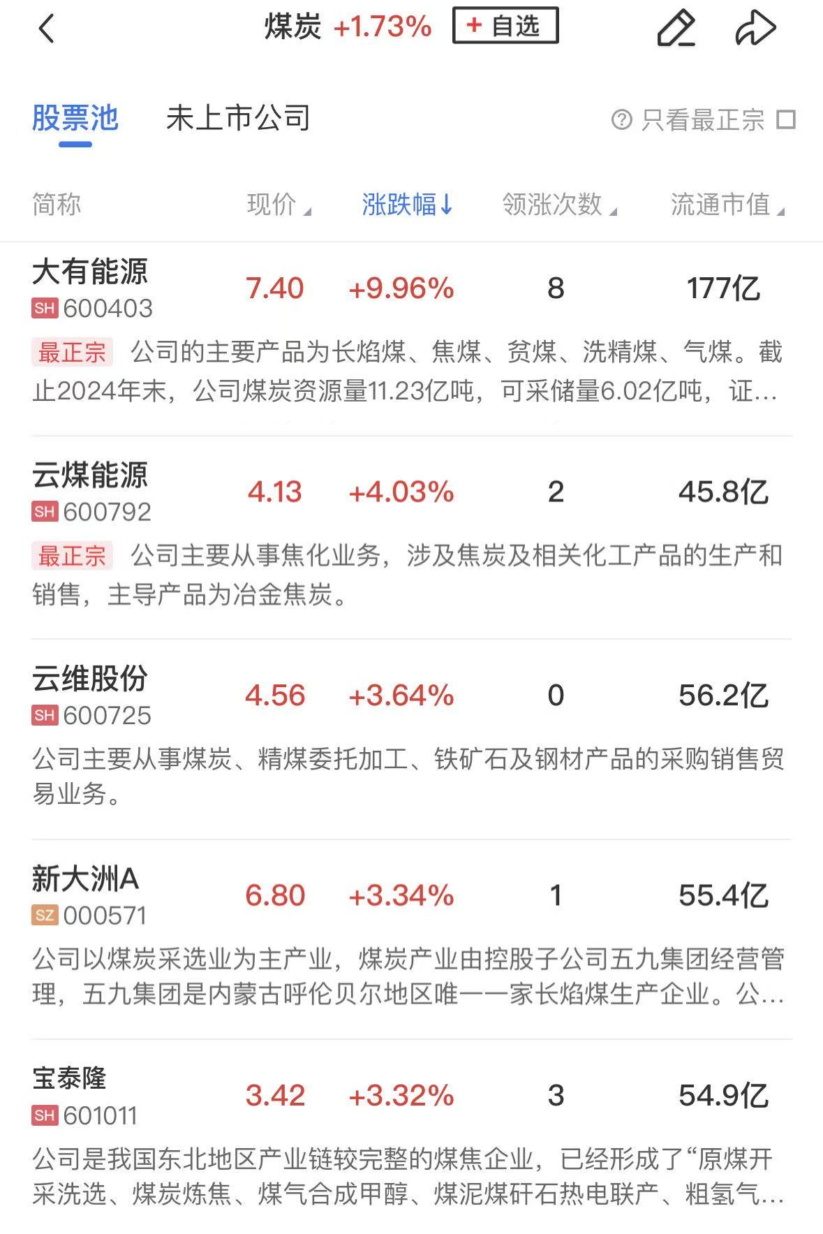 煤炭板块震荡走强,大有能源涨停,云煤能源、新大洲A、宝泰隆等个股涨幅居前。