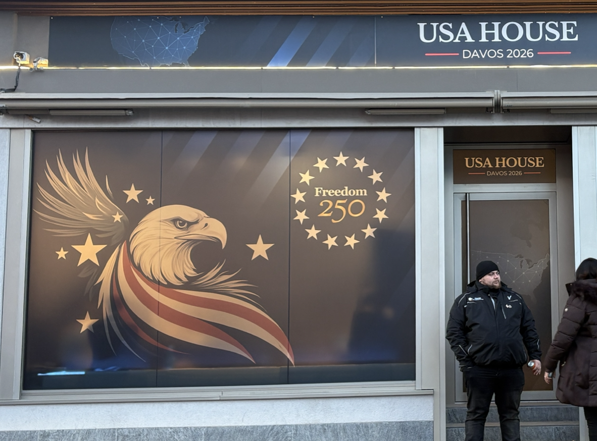 达沃斯主会场附近的美国馆。今年是美国建国250年,象征是一只冷峻的鹰。由作者拍摄