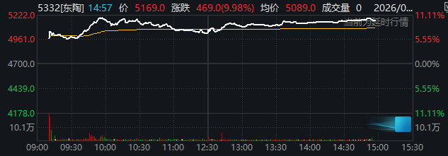 行情数据显示,东陶周四的涨势使陶瓷板块成为东证指数周四上午表现最佳的板块。截至发稿,东陶股价日内上涨了10.09%,创下2021年2月以来最大盘中涨幅,这轮升势也使得其年内迄今的涨幅达到了约20%。