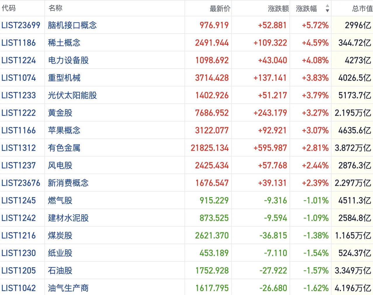 其他方向上,商业航天、AI应用等概念均有炒作热度。光伏、贵金属、生物医药、智能驾驶,半导体等行业纷纷上行。