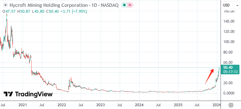 财联社1月23日讯(编辑 赵昊)受益于贵金属价格连创新高,拥有内华达州北部一座尚未投产金银矿的Hycroft Mining Holding Corporation在过去两个月中股价暴涨逾380%。