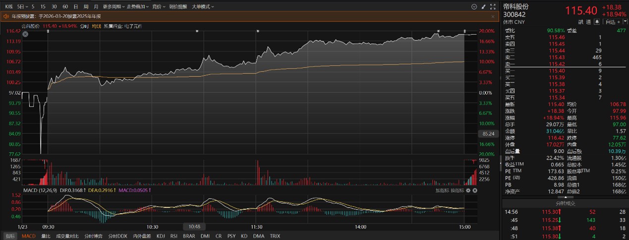 二级市场上,帝科股份周五收盘涨近19%。