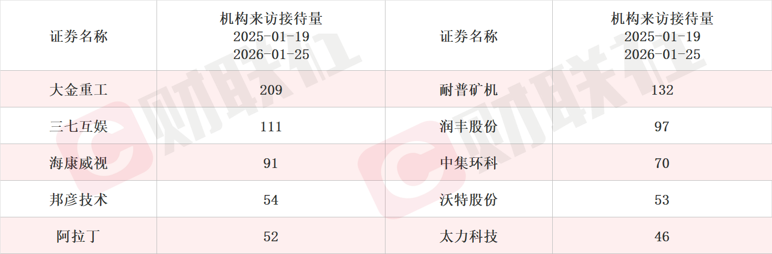 具体上市公司方面,据Choice数据统计,天禄科技和泰和新材接受调研次数最多,均达到5次。从机构来访接待量统计,大金重工、耐普矿机和三七互娱排名前三,机构来访接待量分别达209家、132家和111家。