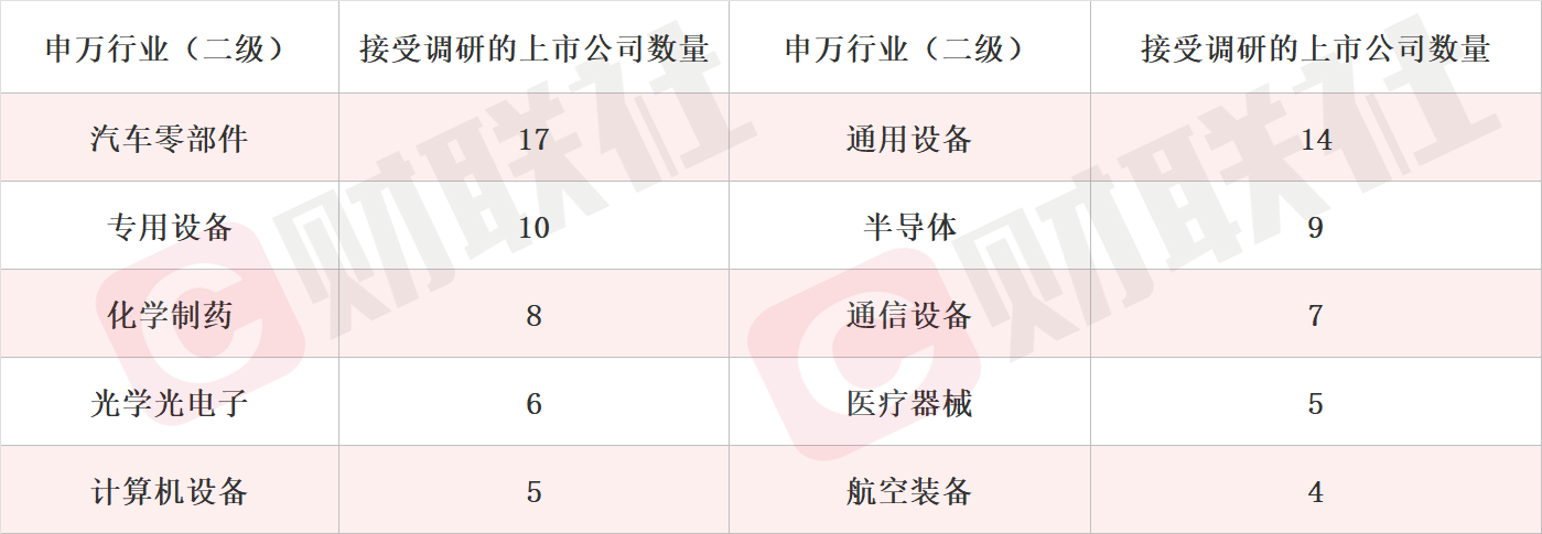细分领域看,汽车零部件、通用设备和专用设备板块位列机构关注度前三名。此外,医疗器械、航空装备等行业机构关注度提升。