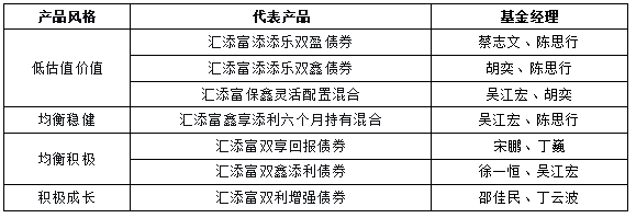 优势三:风险收益特征稳定的产品体系。汇添富将基金经理的能力圈和产品定位、目标有效匹配,让投资经理的投资优势、风格特征与客户需求有效匹配,强调“客户需求-产品定位-投资人员-投资策略”的四位一体,打造风格清晰稳定、多策略的底层资产,持续完善产品布局。