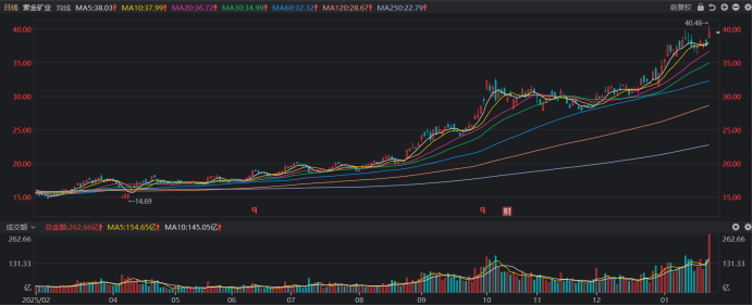注:紫金矿业今日股价再创历史新高(截至1月26日收盘)
