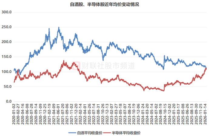 注:白酒股、半导体股近年均价变动情况(截至1月27日收盘)