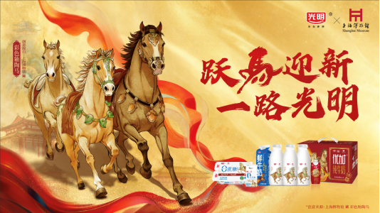 作为长期战略合作伙伴,光明乳业连续三年携手上海博物馆打造新年限定包装新品。今年,光明乳业深挖馆藏马文化元素,以彩色釉陶马为设计灵感打造全新包装,每一款产品都兼具健康品质与文化韵味,将马年的美好寓意与乳品的营养属性相融,为新年注入别样的文化气息与健康活力。