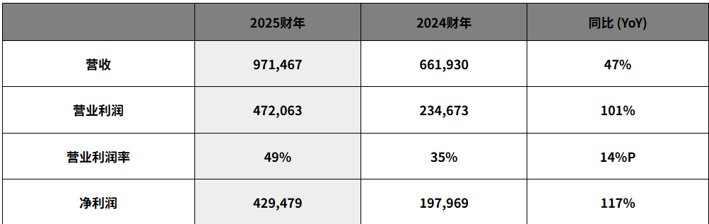 2025年,SK海力士收入达到97.15万亿韩元(约680亿美元),营业利润达47.21万亿韩元,净利润达42.95万亿韩元,均打破2024年创下的纪录。年度收入增幅超过30万亿韩元,营业利润则同比增长近一倍。