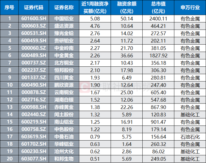 注:近1周融资净买额居前的资源股(截至1月17日数据)
