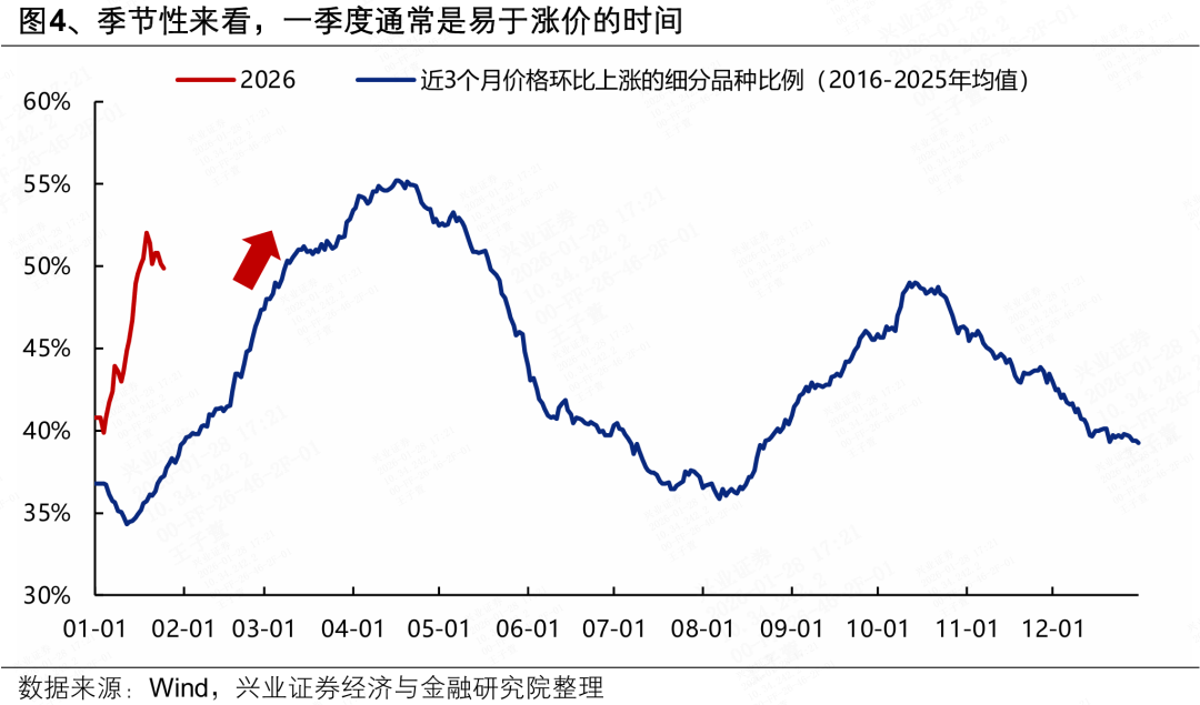 往后看,从季节性角度,一季度通常是易于涨价的时间,后续涨价线索有望进一步丰富。随着春节后步入“金三银四”春季开工旺季、叠加3月两会后政策集中落地,一季度通常是易于涨价的时间,涨价线索有望进一步丰富。
