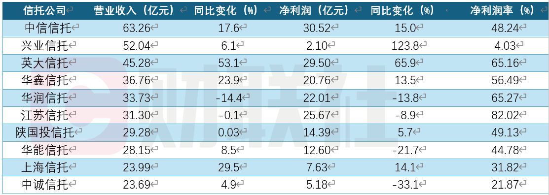 过半信托公司营收正增长