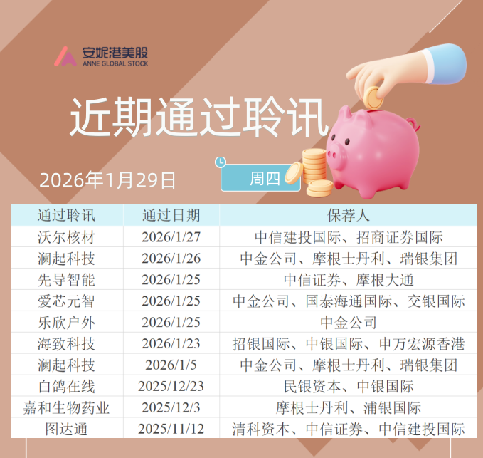 2026年1月29日至2026年2月3日招股,该公司拟全球发售475万股,其中香港发售占10%,国际发售占90%,另有15%超额配股权,发售价每股57.7-66.6港元。每手50股,预期股份将于2026年2月6日在联交所开始买卖。