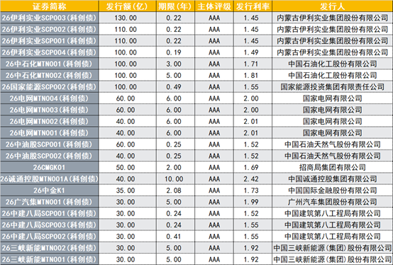 从1月已发行的科创债来看,伊利集团发行了四期超短融,规模合计450亿元。中石化、国家电网等一众央企已发行的科创债规模也较大。