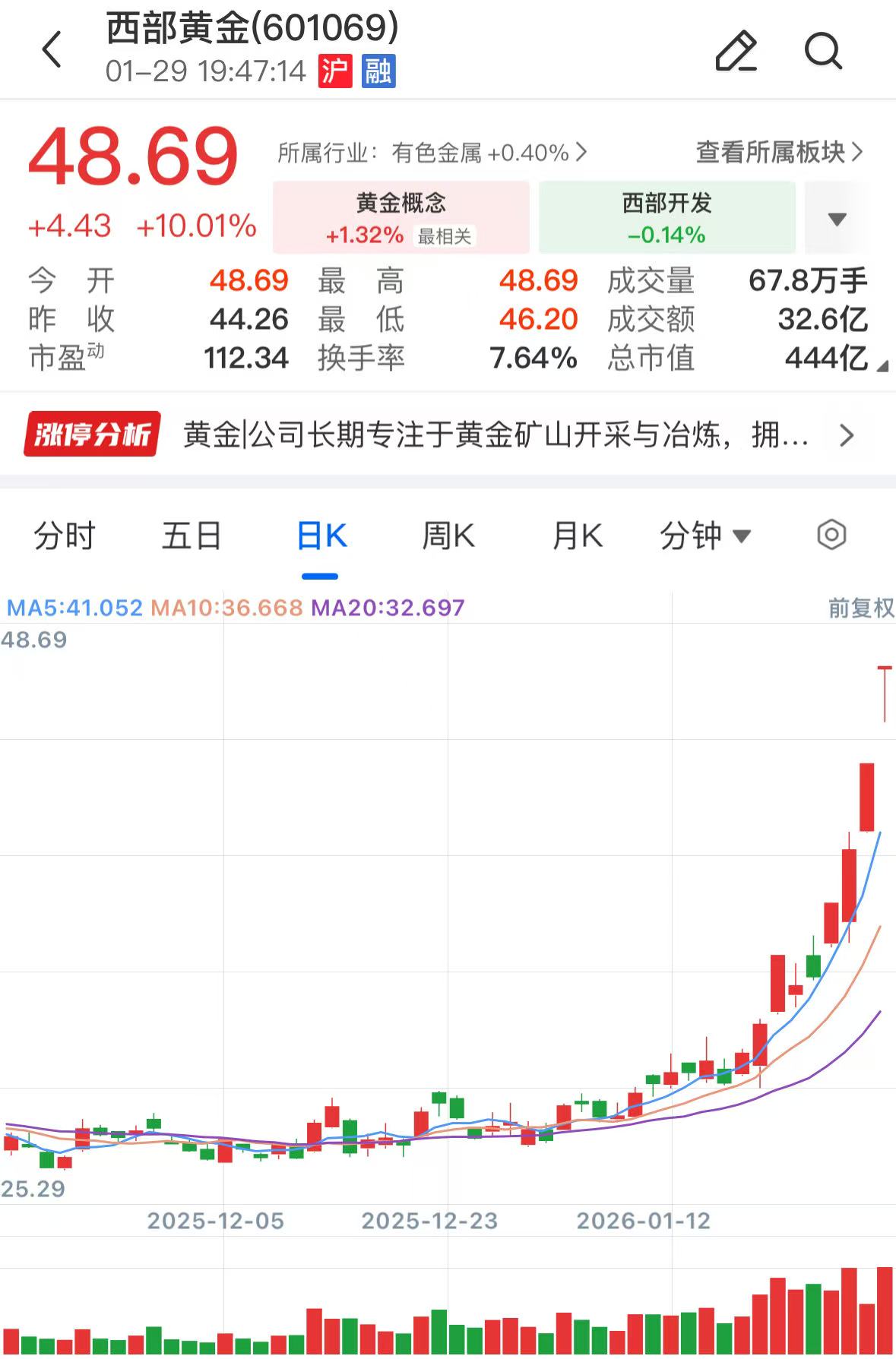 西部黄金发布股票交易风险提示公告,公司关注到目前黄金市场热度较高,黄金产品的市场价格累计涨幅较大,敬请广大投资者理性投资、审慎决策,注意投资风险。