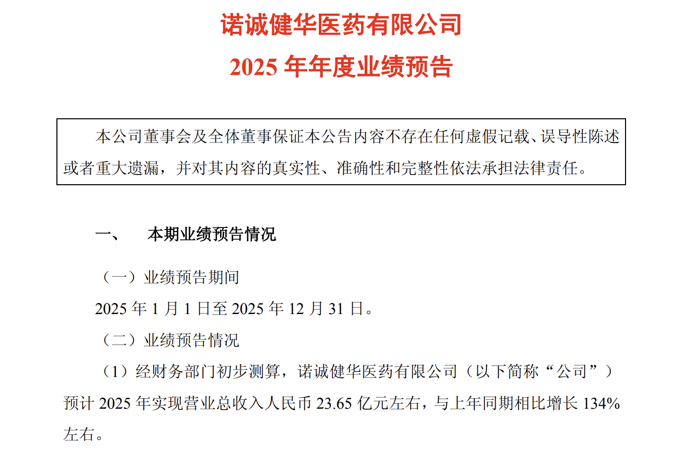 《科创板日报》1月30日讯(记者 史士云)29日晚间,诺诚健华发布2025年年度业绩预告称,经财务部门初步预算,预计公2025年全年实现营收约23.65亿元,较上年同期大幅增长134%,预计实现归母净利润约6.33亿元,较上年同期增加了约10.74亿元。这也是诺诚健华自成立以来,首次实现年度业绩的扭亏为盈。