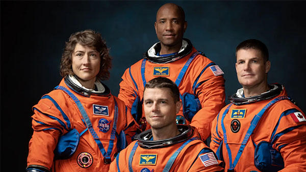 “阿耳忒弥斯2号”任务乘组:科赫(左)、怀斯曼(前)、格洛弗(后)和汉森(右)