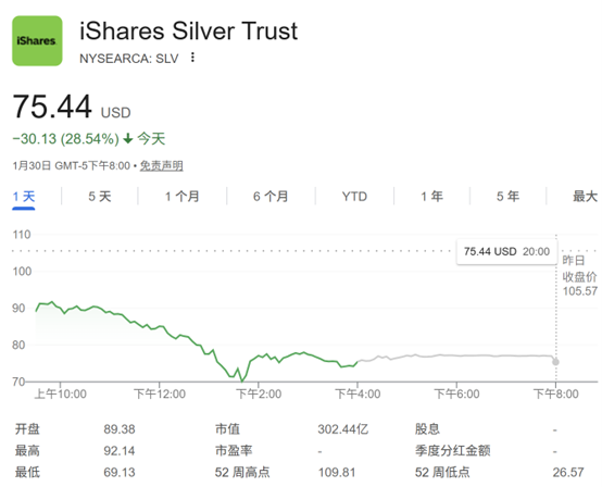 据道琼斯市场数据显示,iShares Silver Trust上周五的百分比跌幅创下有史以来最大纪录。