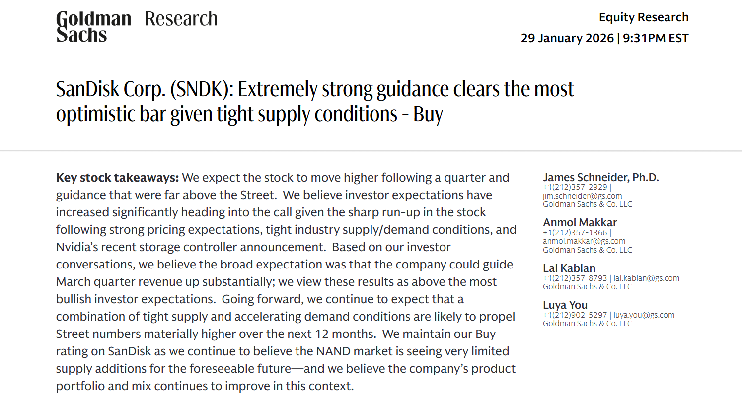 高盛在报告中写到,他们对闪迪股价看好基于以下三点: