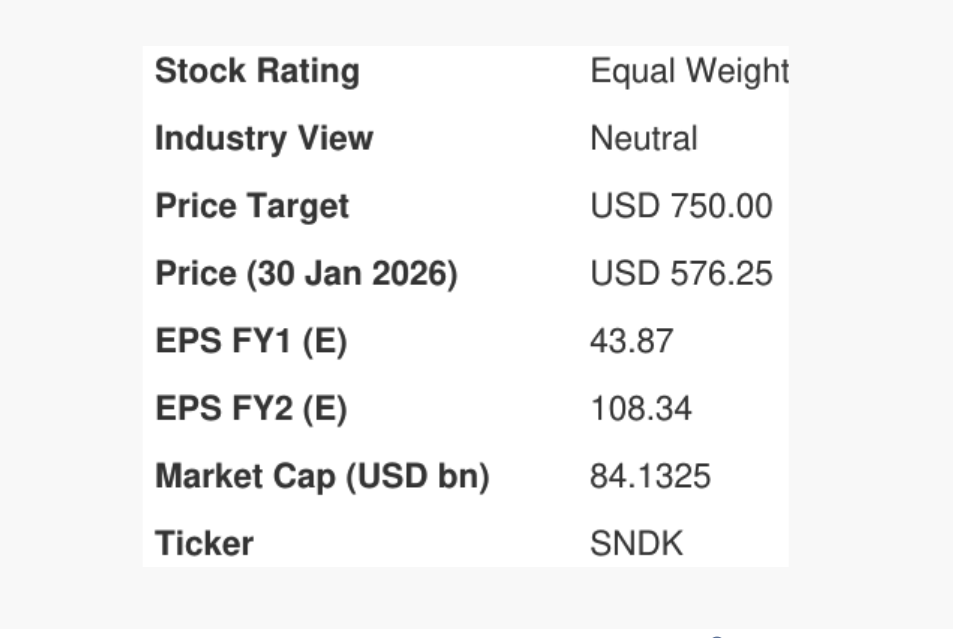 花旗集团将闪迪目标股价上调至750美元;