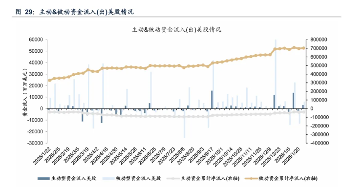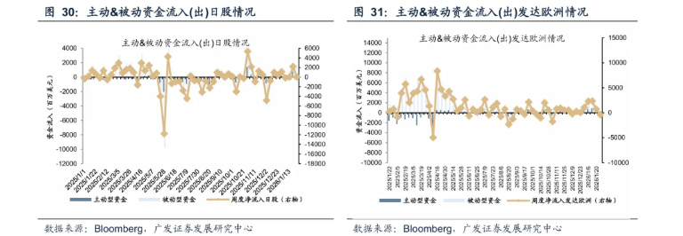 海外市场资金流向显示,全球资金正从发达市场向新兴市场转移。截至1月28日当周,美股虽转为资金净流入,但日本市场流入规模明显减少,发达欧洲市场转为净流出。