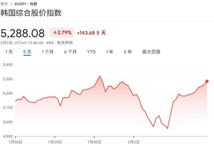 财联社2月3日讯(编辑 马兰)韩国股市在周一大幅抛售,一度引发熔断。而随着全球市场企稳,以及投资者对人工智能支出担忧的消退,韩国科技巨头再次拉动韩国股市整体上涨。