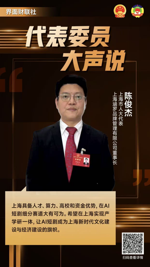 在正在举行的上海两会上,上海市人大代表、上海涵罗品牌管理有限公司董事长陈俊杰向财联社记者表示,上海具备人才、算力、高校和资金优势,在AI短剧细分赛道大有可为。