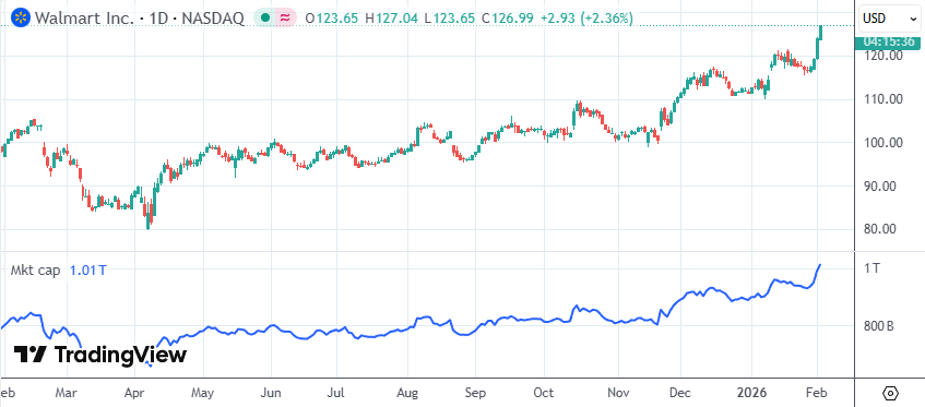 行情显示,沃尔玛盘中一度涨约2.4%,最高报127.04美元,年内该股已累涨逾14%,显著跑赢同期累涨不到1.3%的标普500指数。
