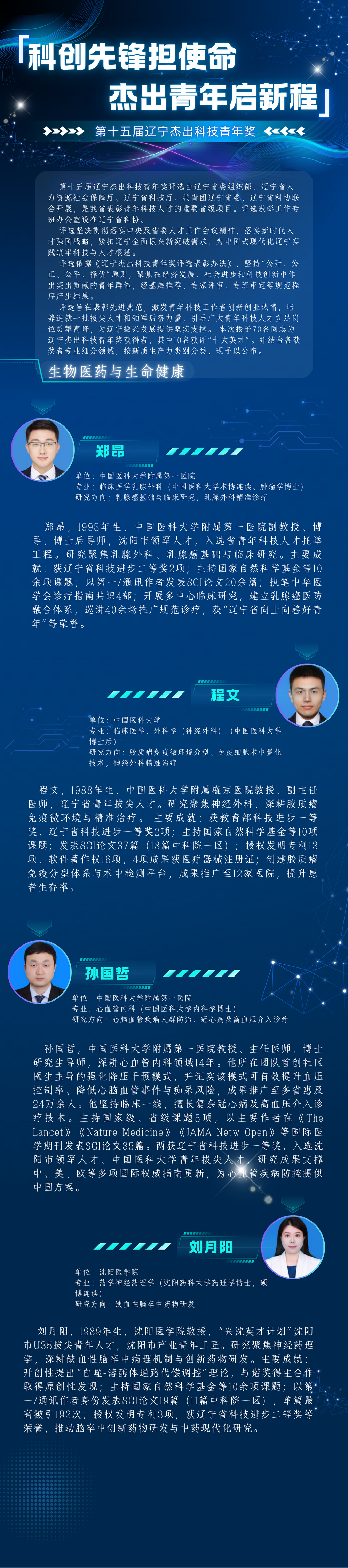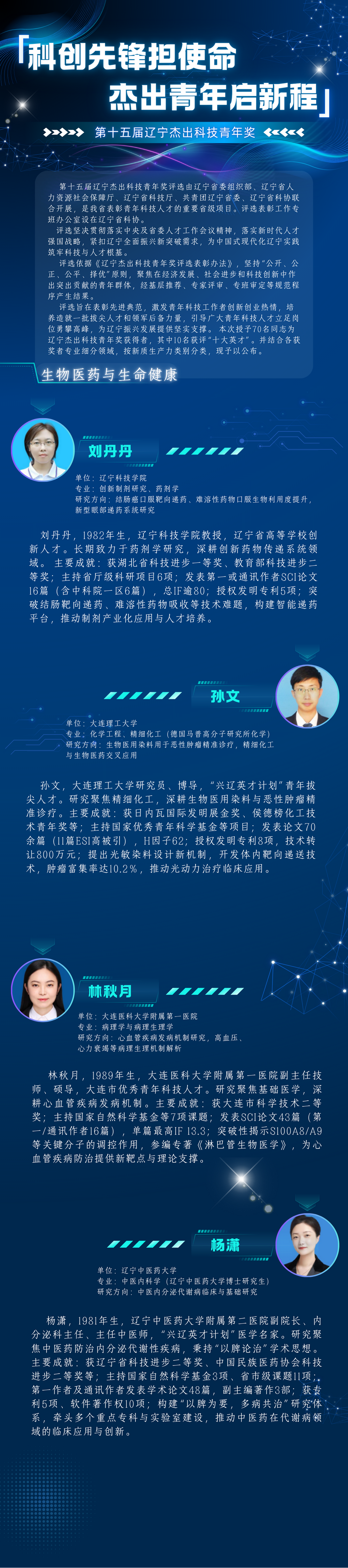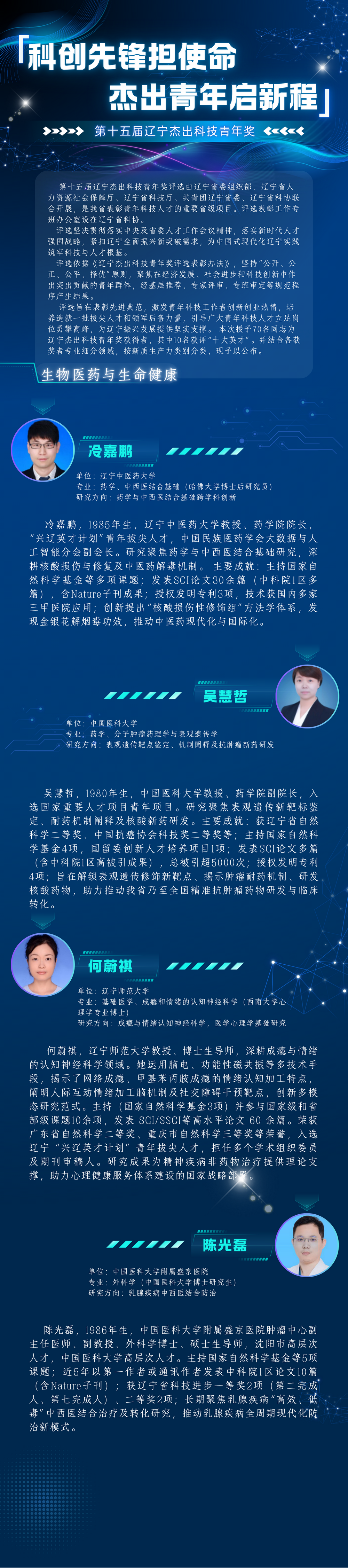 辽宁生物医药与生命健康类杰出科技青年奖公布