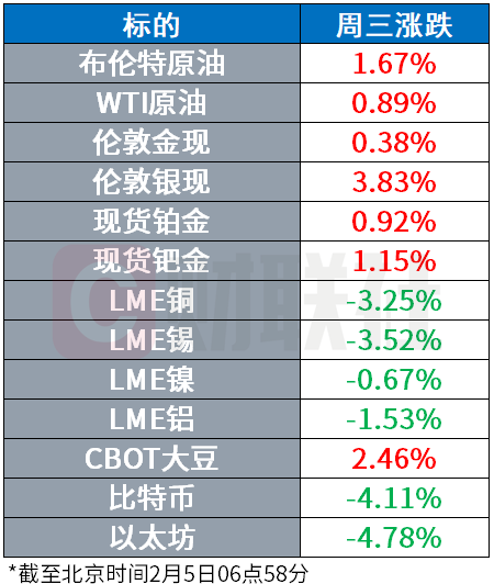 其他方面,跌宕转折的美伊谈判局势继续推高油价,贵金属也进一步反弹,现货黄金在周四清晨重回每盎司5000美元。工业金属集体走弱,加密货币的抛售潮似乎仍没有停下来的迹象。