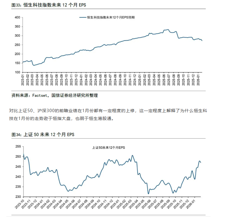 国信证券指出,恒指前瞻业绩持续上修并突破前高,恒生科技指数业绩预期微幅下修,解释其相对弱势。