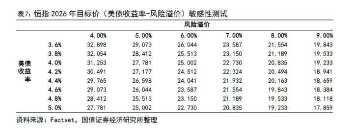 敏感性分析显示:在风险溢价4.0%–9.0%、美债收益率3.6%–5.0%情景下,2026年恒指目标区间为28,000–31,250点。