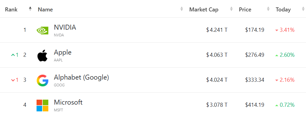 周三(2月4日),苹果股价收涨2.6%,当天纳斯达克100指数下跌1.77%。周三大涨后,苹果公司总市值达到4.063万亿美元,反超了谷歌(4.024万亿美元)重回全球第二。