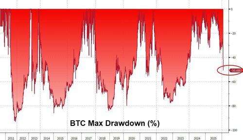 比特币周四也重挫跌破了6.5万美元,遭遇自FTX崩盘以来最大的单日跌幅,杠杆押注解除及整体市场动荡加剧抛售。就在一周前比特币在跌破80000美元关口后呈现加速下跌态势,与去年十月初生机勃勃创出历史新高的12.6万美元相比,目前已跌去近半。