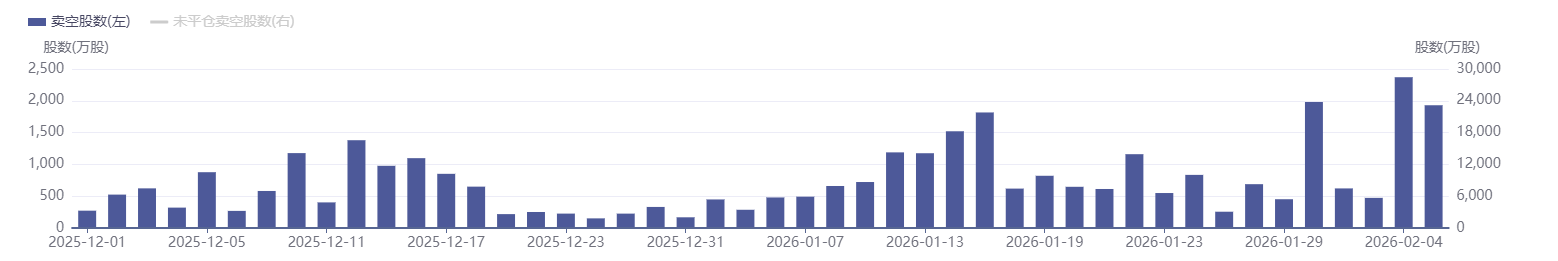 受海外情绪传导影响,港股AI应用、SaaS及游戏等科技细分领域近期承压明显,卖空活跃度持续抬升。数据显示,2025年12月底至2026年2月5日,多家代表性企业卖空规模呈阶梯式增长,具体表现如下: