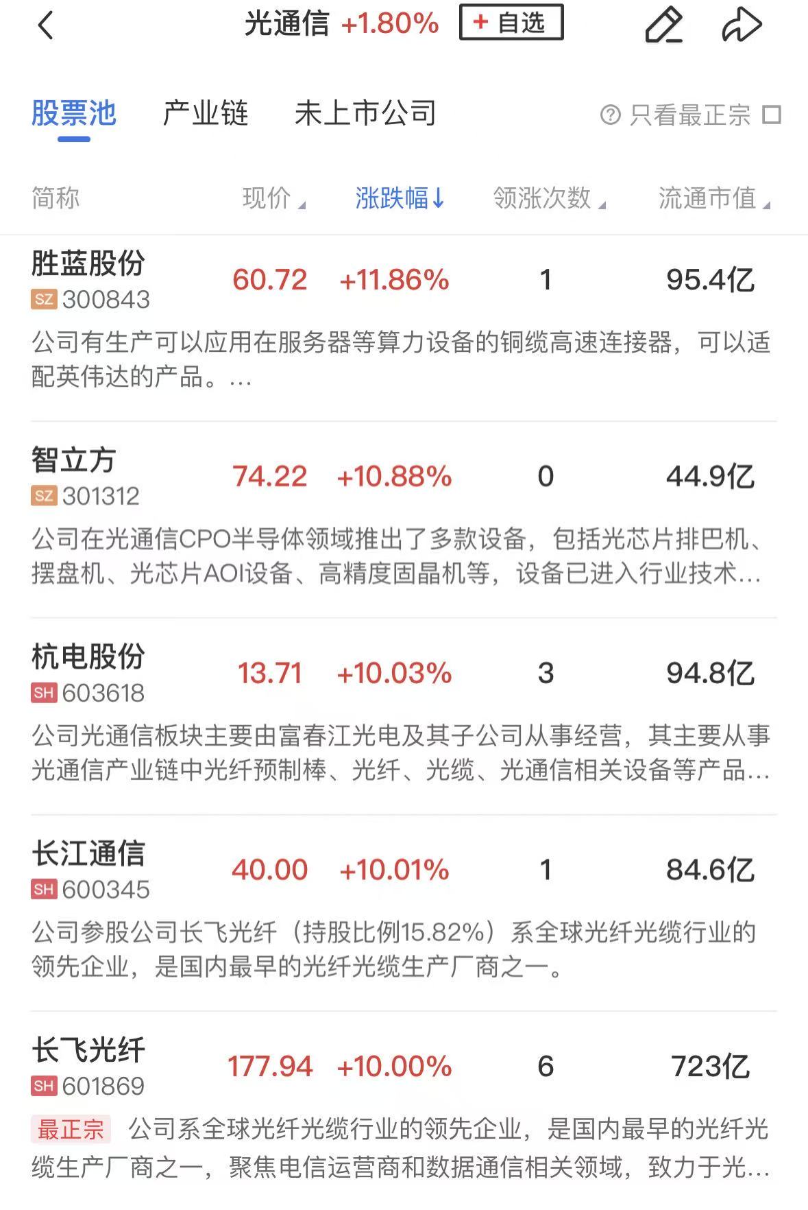 光通信概念震荡回升,杭电股份6天5板,长江通信、长飞光纤同样涨停,胜蓝股份、易天股份、通鼎互联、中威电子等个股涨幅居前。