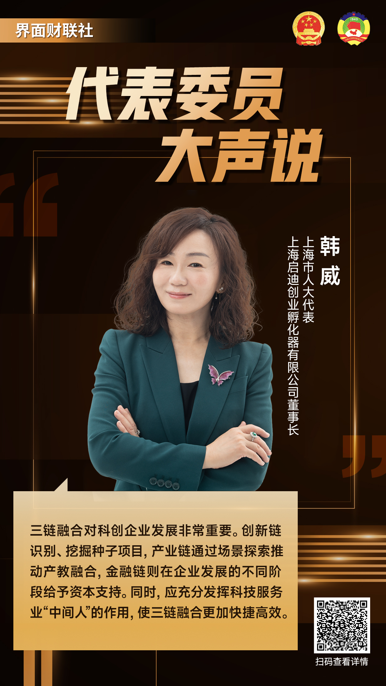 谈及三链融合,她进一步告诉财联社记者,创新链识别,挖掘种子项目,产业链通过场景探索推动产教融合,金融链则在企业发展的不同阶段给予资本支持。同时,她还认为应充分发挥科技服务业“中间人”的作用,使三链融合更加快捷高效。