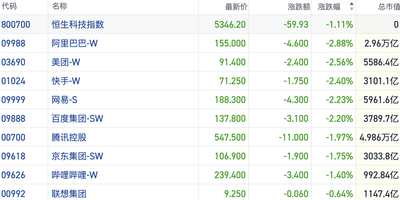 盘面上,大型科网股再度表现低迷,阿里巴巴、京东、网易均跌超2%。