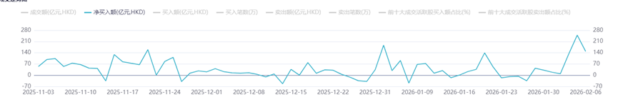 根据统计显示,南向资金上周(2月4日—6日)3个交易日均实现净流入,累计规模达532.09亿港元,单日买入力度逐日增强,多次刷新近一个月纪录。值得注意的是,该流向扭转了1月以来资金阶段性波动甚至净流出的态势,成为港股在经历深度回调后企稳反弹的重要推力。