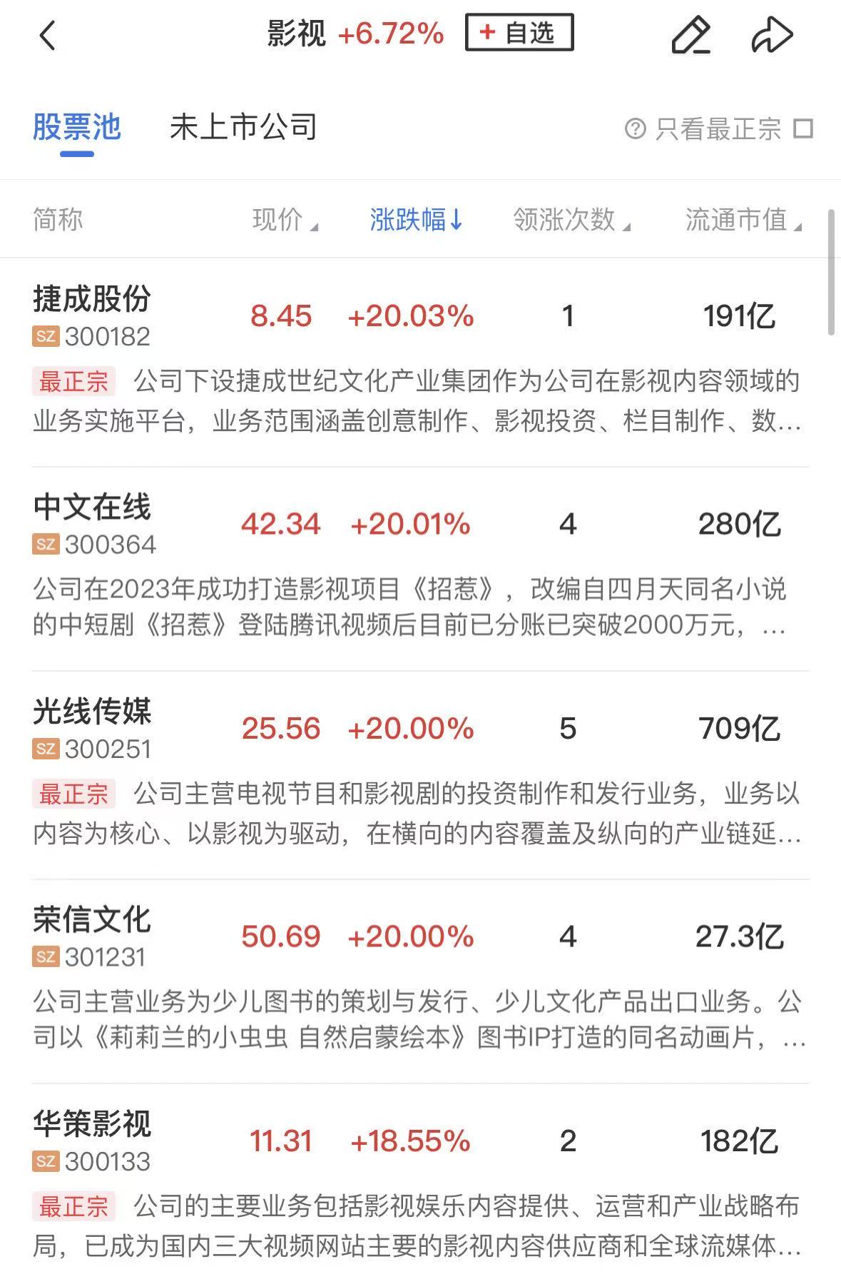 板块上,AI应用方向再度全线爆发,影视院线涨幅居前,捷成股份、光线传媒、欢瑞世纪、中视传媒、金逸影视、中国电影等涨停。