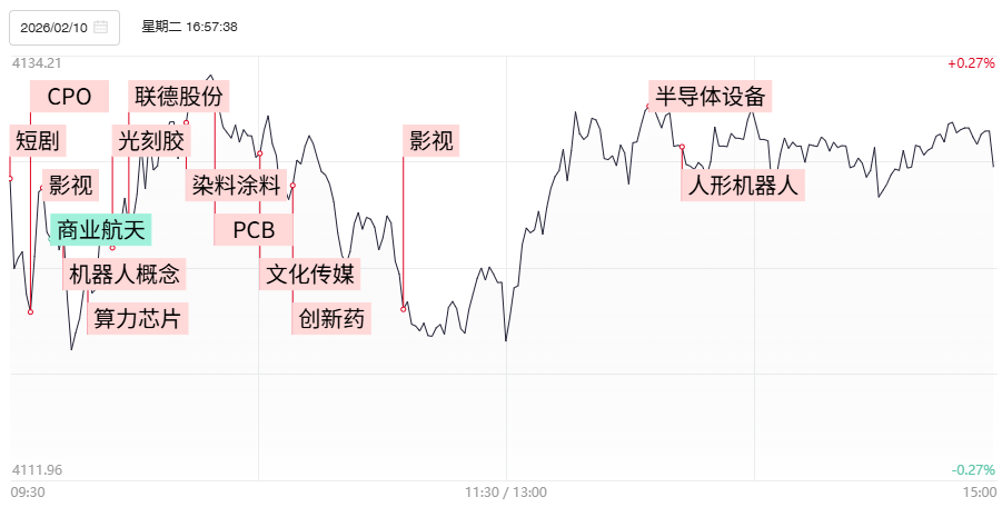 2月10日,北京人形机器人创新中心正式发布新一代通用机器人平台具身天工3.0。机器人概念受此消息提振全天表现不俗,万向钱潮午后封涨停,五洲新春一度逼近涨停刷新历史高点,华培动力、埃夫特、方正电机等相继冲高。与AI应用端类似,近期机器人概念的活跃也基于一系列消息面的叠加刺激,魔法原子、银河通用、宇树科技、松延动力4家具身智能企业于2026年1月下旬先后官宣登上央视马年春晚舞台。此外2月10日,豆包宣布在春晚播放期间,将为全国观众送出超过10万份接入豆包大模型的科技好礼以及现金红包,其中包括宇树机器人等。因此在AI应用端迎来全面高潮后,属于泛端侧硬件范畴的机器人概念的补涨也在情理之中。但此前主导机器人概念的特斯拉链午后的涨势仍受到较为沉重抛压,因此机器人概念想要取而代之成为新主线难度极大。