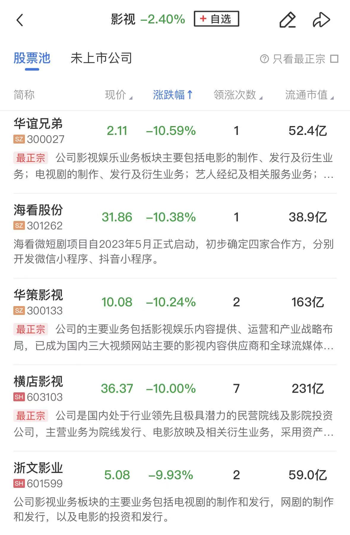 传媒影视方向今日全线调整,横店影视、浙文影业、金逸影视等跌停,华谊兄弟、海看股份、上海电影、百纳千成等个股跌幅居前。