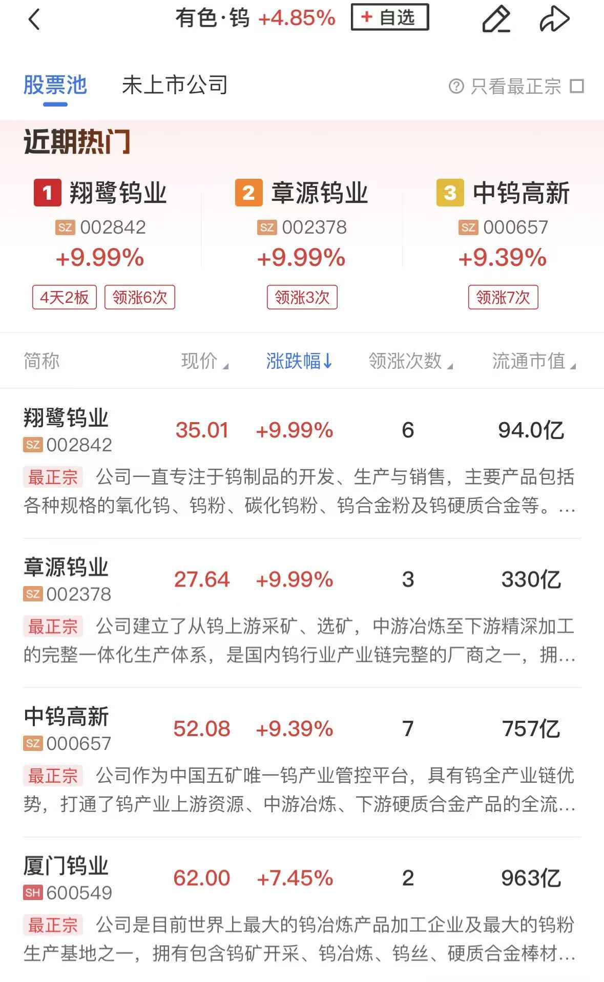 有色金属板块表现活跃,翔鹭钨业4天2板,章源钨业、东方钽业、格林美涨停,浩通科技、中钨高新、金钼股份、厦门钨业等个股涨幅居前。