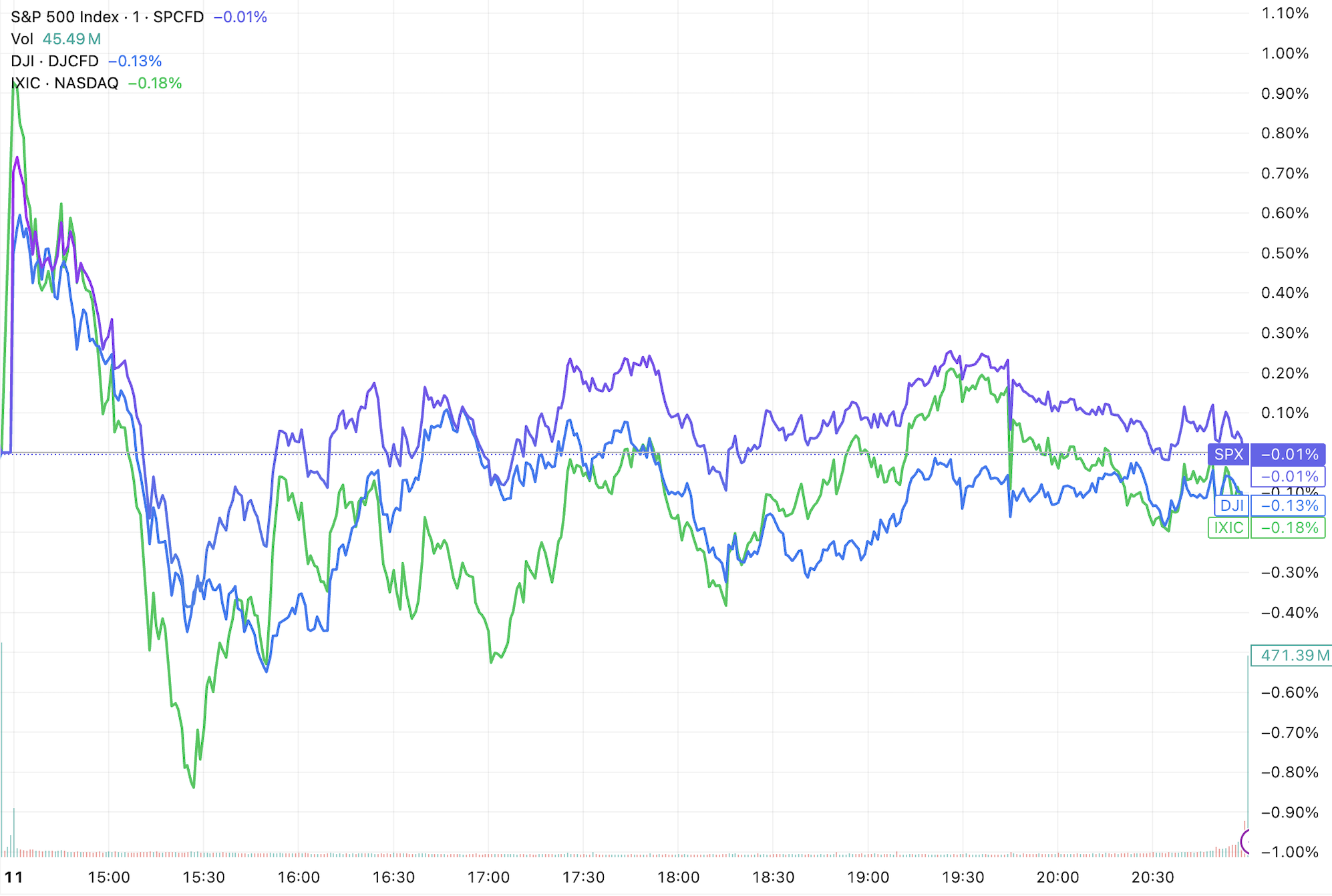 (三大指数日内走势,来源:TradingView)