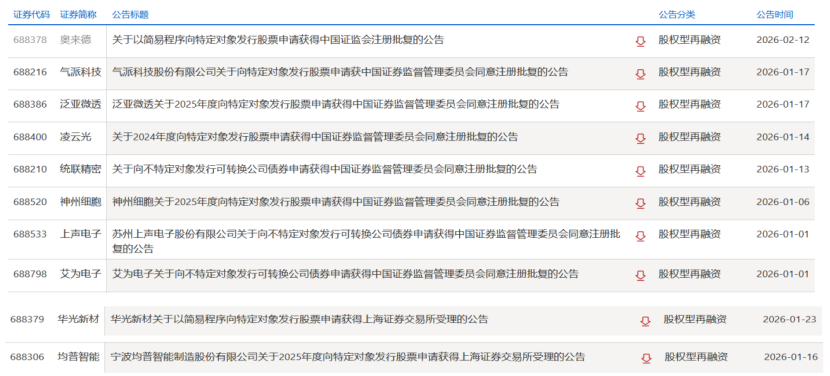 2026年开年以来,A股市场股权型再融资节奏明显加快,主板及科创板多家公司定增、可转债等融资事项相继获批或获受理。