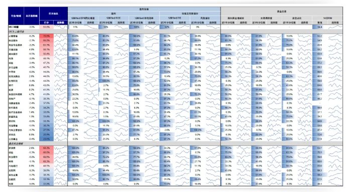金融、生物科技、半导体、有色金属等板块基本面打分较高,但交易维度得分偏低: