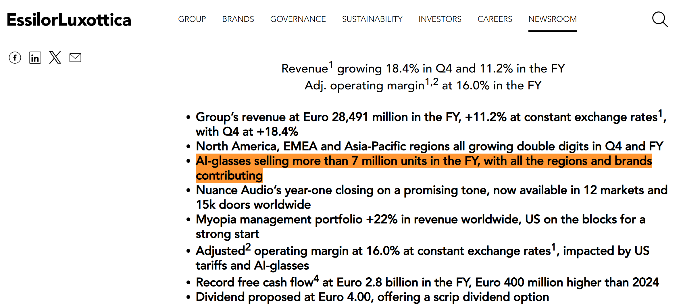 最新财报显示,受美国关税和AI眼镜销售扩大影响,依视路陆逊梯2025财年的经调整利润率为16%,按固定汇率计算比2024年低70个基点。