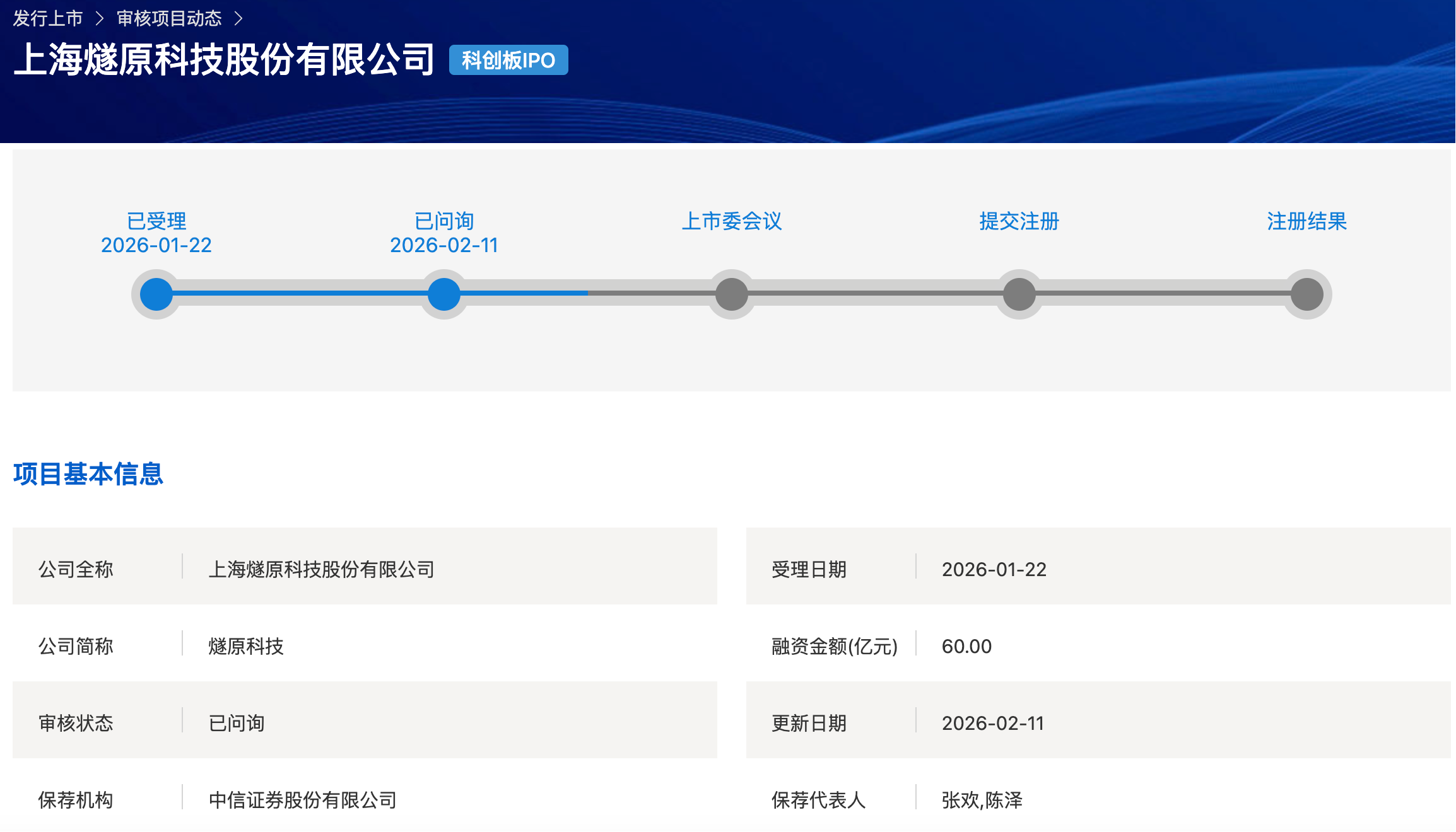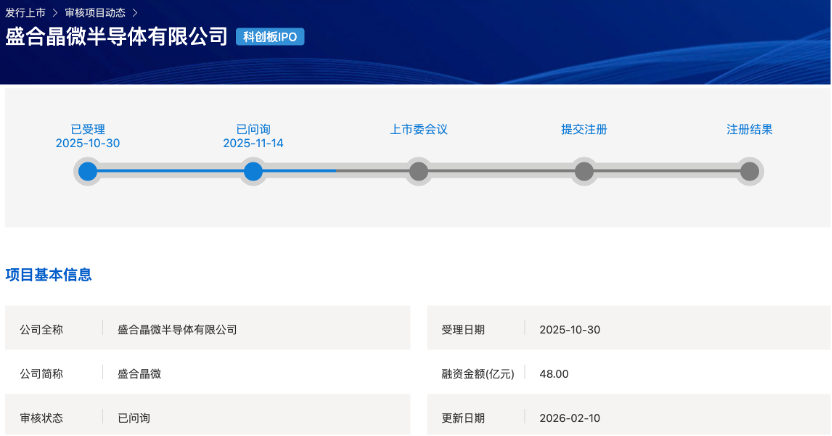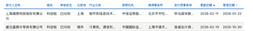 具体来看,盛合晶微、燧原科技分别于2月10日、2月11日审核状态更新为已问询。