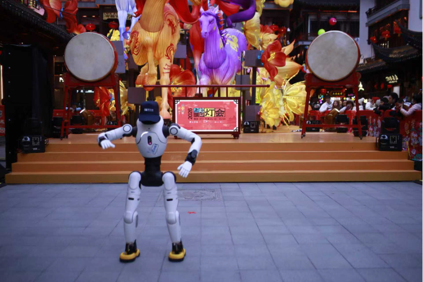 不仅如此,科技的温度正悄然浸润传统年俗。今年春节,上海豫园的九曲桥畔,智元灵犀X2、远征A2、机器狗等参与送福、巡游和点灯等年味互动环节,给来自全国各地的游客乃至大批海外入境游人士带来了上海年俗独特的体验。