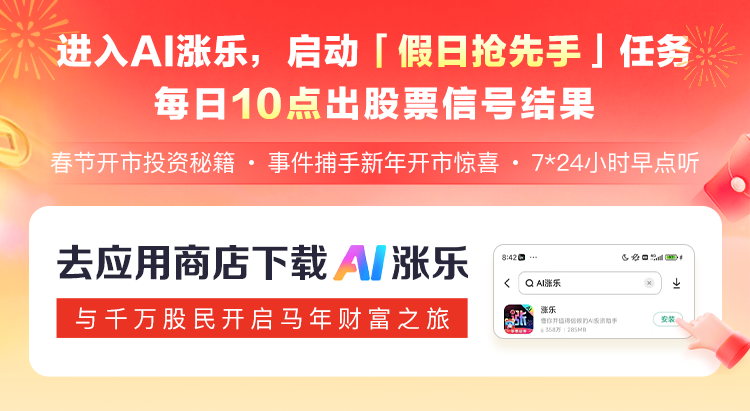 初八开市,红盘启新程!解锁节后专属投资秘籍,「假日抢先手」任务选股结果每日10点公布,立即进入应用商店下载AI涨乐APP,登录查看详情。
